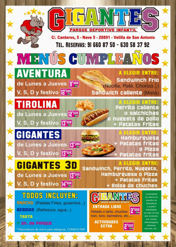 En Gigantes cuidamos cada detalle para que la diversión y la seguridad vayan de la mano. Nuestro parque cuenta con amplias zonas de juego adaptadas a distintas edades, un campo de fútbol, castillos hinchables, tirolina, parque de bolas, noria, zona jumping y muchas más sorpresas.